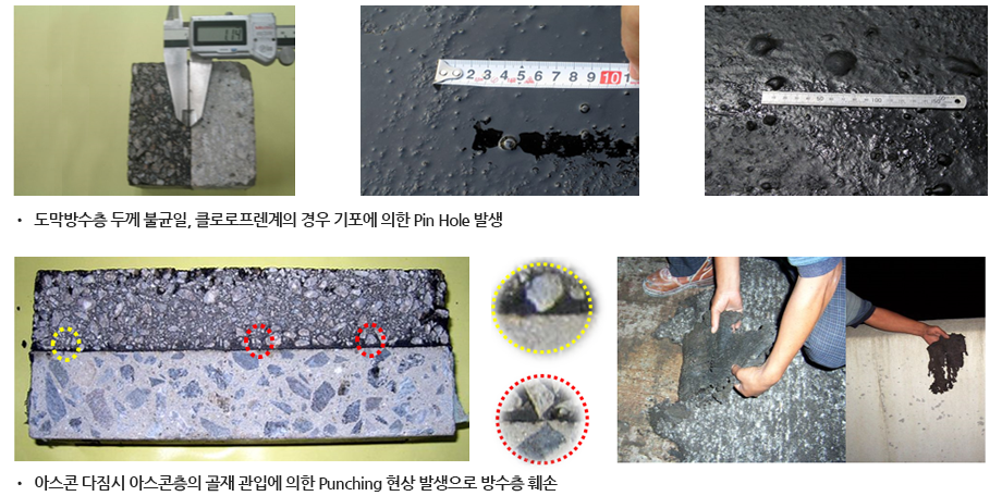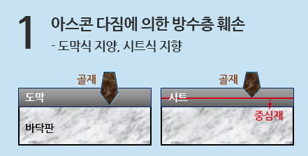 - 방수층이 도막과 보호층(혹은 펠트층)으로 되어 있으면….. 복합방수가 아닙니다.