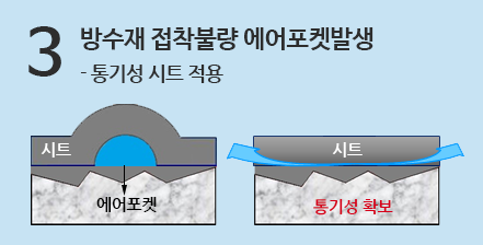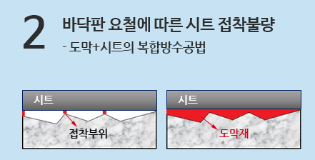- 방수층의 시트가 겹침이음이 아닌 맞댐이음을 하고 있다면….. 복합방수가 아닙니다.