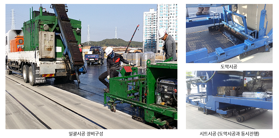 기계장비에 의한 도막과 시트의 일괄시공