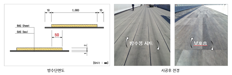 시트는 KS F 4931, 도막은 KS F 4932 기준을 만족하는 복합방수공법