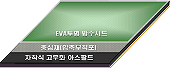 복합시트의 개요- EVA Plas 복합시트는 고무화 자착식 아스팔트를 이용하여 저온에서 연질상태의 유연성과 우수한 탄성 복원력을 갖는 자착식 미가황 고무화 아스팔트 시트와 물리적으로 우수한 인장강도, 신장율, 내화학성과 온도변화에 적응력이 뛰어난 에틸렌 아세트산 비닐수지계 (EVA) 방수재를 일체화함으로써 두 소재의 장점을 극대화시킨 제품이다.
